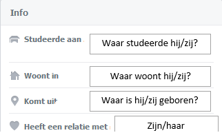 2. Vul aan de hand van deze informatie het linkse kader in met de titel 'info' op de facebookpagina.