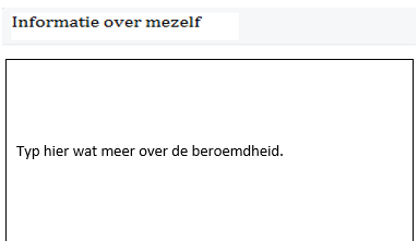 De profielfoto en de achtergrondfoto staan al in jouw kladversie. Goed! De bezoekers kunnen hierdoor al recente foto's bekijken. Natuurlijk moet je ook wel en beetje persoonlijk informatie prijsgeven. Geen nood, deze heb je al opgezocht. Je moet het alleen nog maar in je kladversie invoegen.